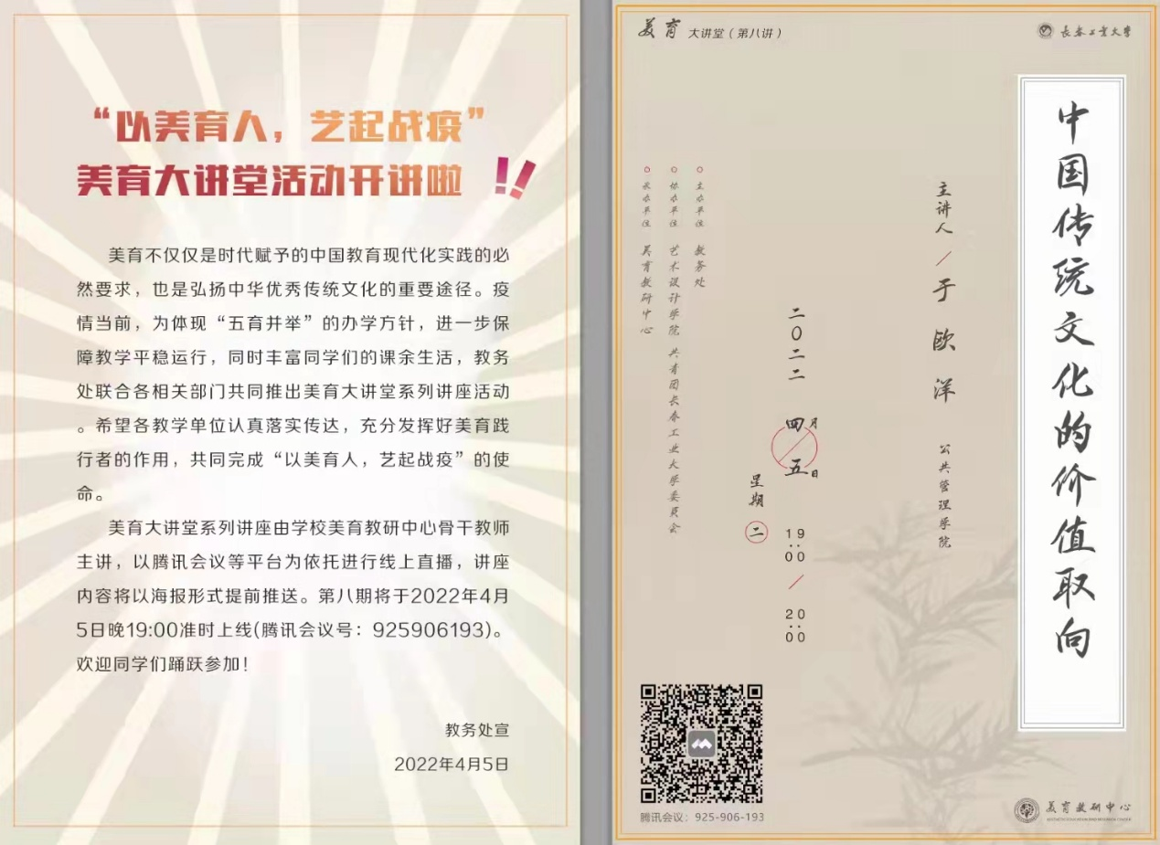 米兰milan官方网站“以美育人,艺起战役”美育大讲堂是在当下抗疫背景下开展的系列讲座活动,是弘扬中华优秀传统文化的重要途径。