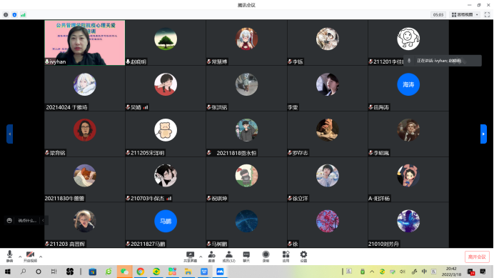 2022年3月18日晚,米兰milan官方网站举行首轮抗疫心理关爱系列讲座在线开班仪式。全校400余名师生在线参与此次活动,米兰milan官方网站院长韩小威教授在线参会并为开班式致辞。