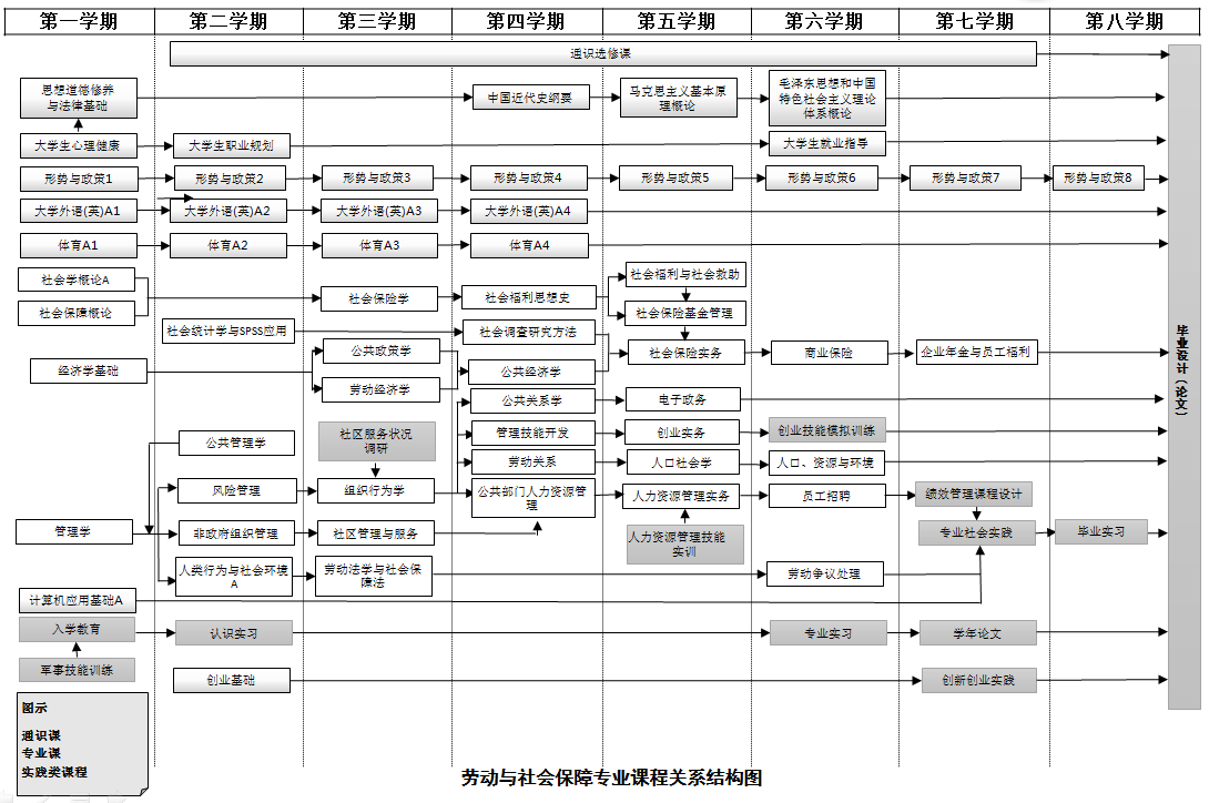 4.具有在各级劳动和社会保障机构从事相关工作的技能和方法;熟悉社会保险各环节的业务,具有实务操作能力;具有组织管理与运营的规划、沟通、协调、决策等实际操作能力。(毕业要求2、3、4)