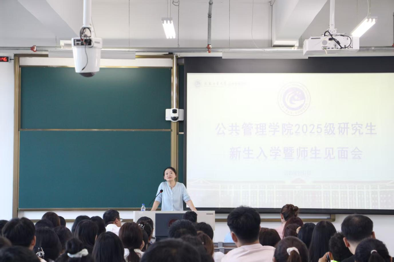 会上,吕红副院长代表学院对2025级研究生新生的到来致以热烈欢迎与诚挚祝贺,并介绍了学院的历史沿革、师资队伍及平台建设,围绕研究生导师互选、个人人才培养方案制定、课程体系设计、学位论文规划等核心环节展开说明;同时深入阐释了学院的人才培养理念,以及“厚德明理、砺学为公”的活力型人才培养使命与愿景,明确了研究生课程学习要求及科研、日常学习生活中的注意事项,并对学院举行的研究生的相关活动进行了动员,鼓励研究生规划自己的学习生涯。