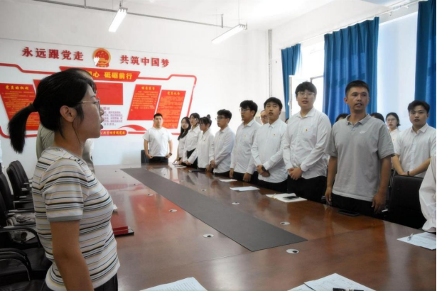 在庄严的氛围中,活动进入重温入党誓词环节。由研究生第一党支部党员汤廷旭同志领誓。伴随着铿锵有力的国歌声余音,党员们满怀激情地举起右拳,面对鲜红的党旗郑重宣誓。铿锵誓言回荡在会场,激励着大家坚定理想信念,践行庄严承诺。