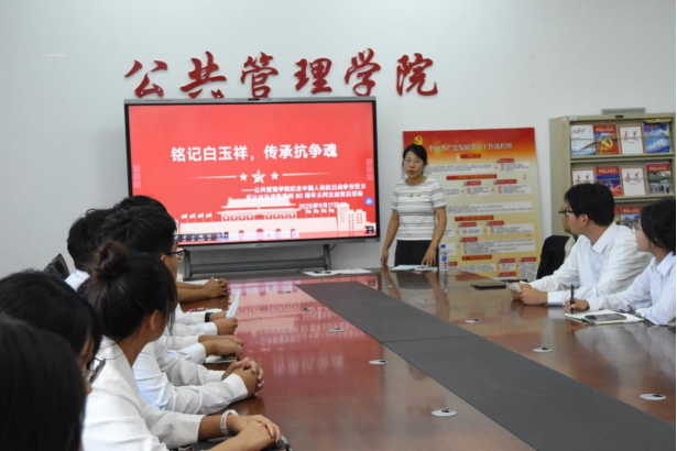 最后,学生党员袁采依、王昱淇结合学习体会,分享了对白玉祥先生抗战精神的感悟,表达了要继承和发扬先烈遗志,把报国之志融入学习科研与社会实践的坚定决心。