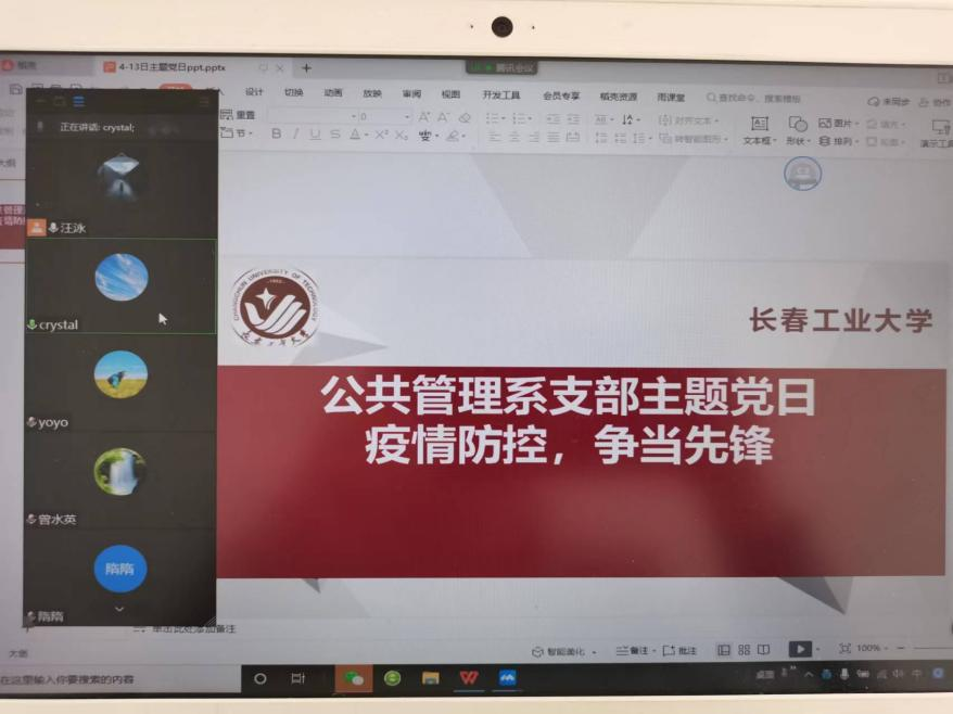 根据学校党委组织部《关于开展“疫情防控,争当先锋”线上主题党日活动的通知》,公共管理系党支部在2022年4月13日12:40-14:00,在腾讯会议线上开展“疫情防控,争当先锋”主题党日活动。