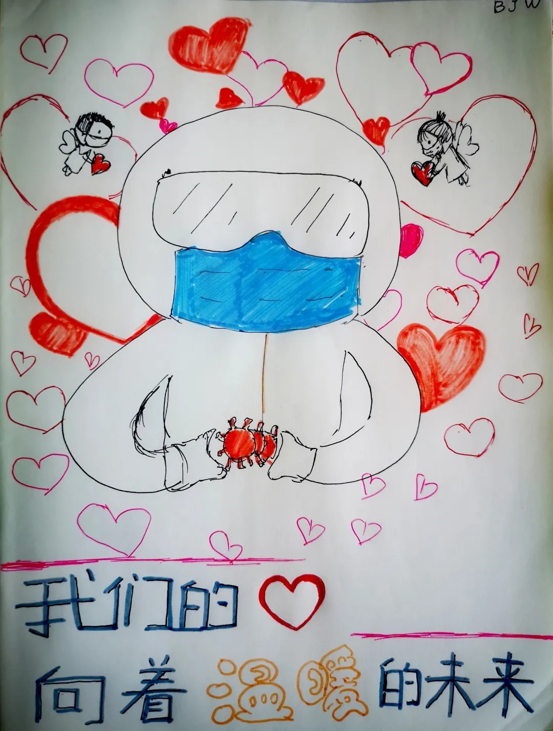 在这个充满爱心的日子,部分同学展现文采,画了一些防疫书画,弘扬雷锋精神,发扬志愿者意志!