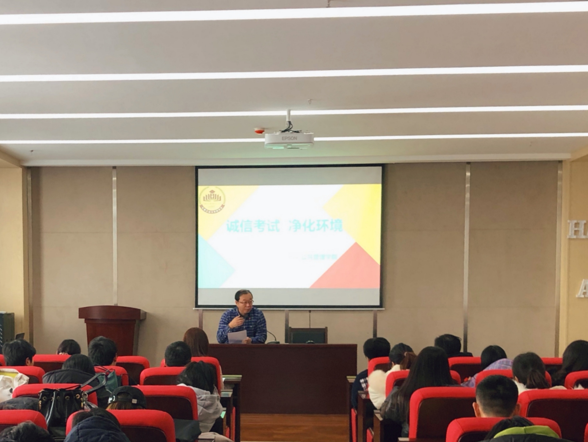 学院网讯 为了迎接即将到来的2019年12月20日大学生英语四六级考试和2019-2020学年上学期期末考试,米兰milan官方网站于2019年12月11日在北湖校区报告厅举行了“诚信考试净化环境”主题教育大会。本次会议主讲人学院党委副书记钟诚面向参会的研究生发表了讲话。