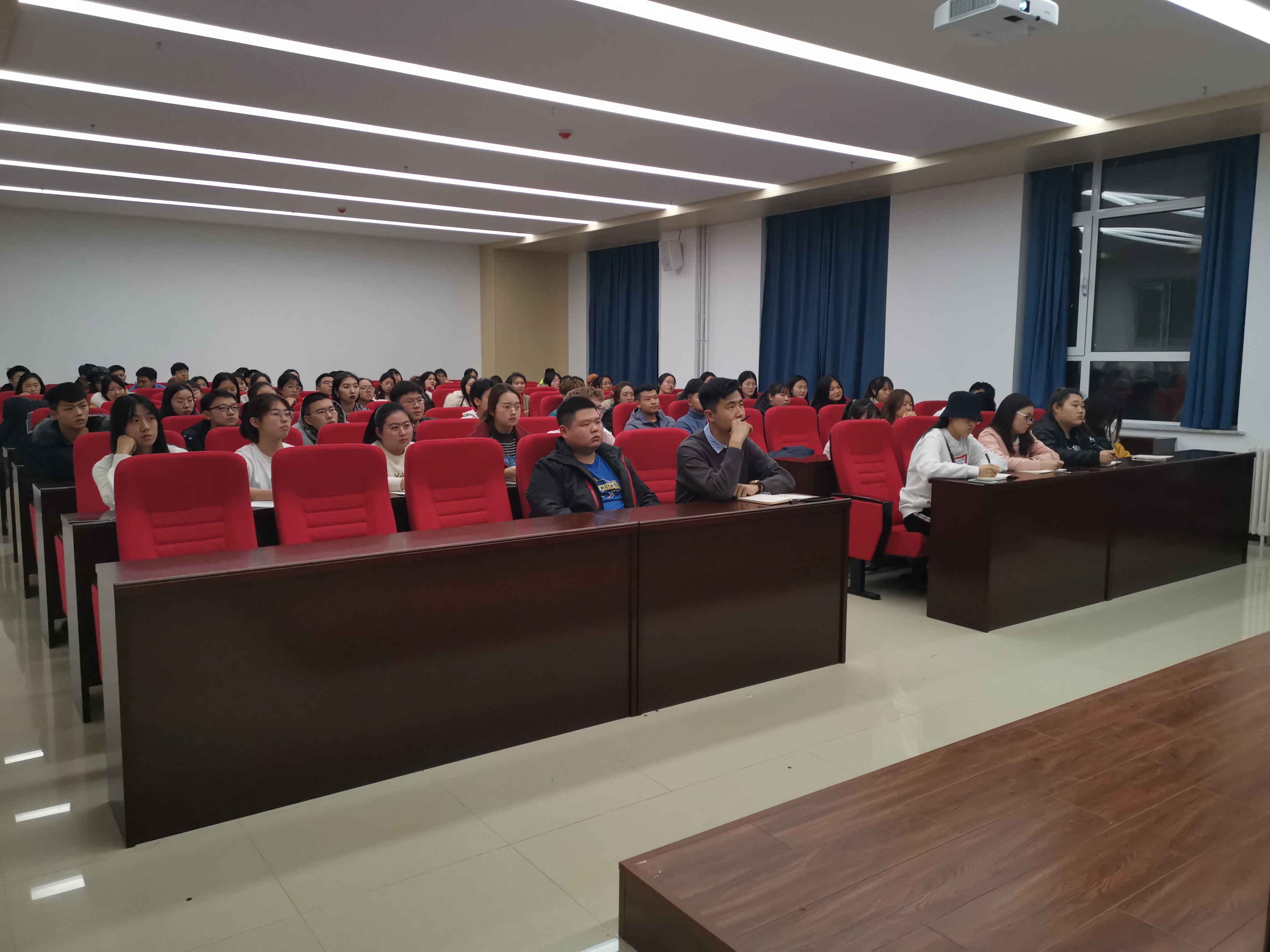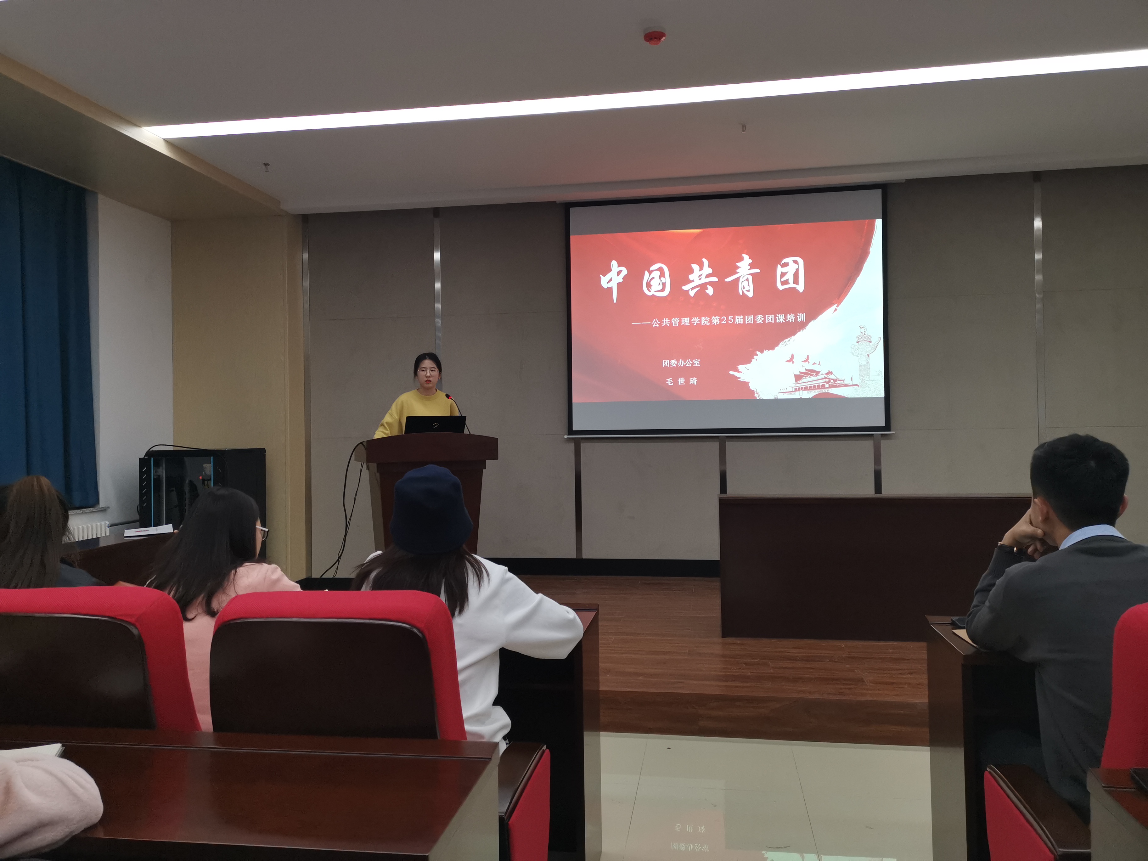 团课由团委办公室负责人毛世琦进行讲授,向新加入团委会的干事们介绍中国共产主义青年团的基本知识,希望通过此次活动,同学们能够更加了解共青团的相关知识,在中国特色社会思想理论的指引激励下,奋力前行,并且,还组织观看中国共青团起源史、发展史,申明团员要求以及习近平主席所指出的新时代青年所应有的六点目标,同时介绍共青团歌,要求参会人员听并学会熟练地唱出来。