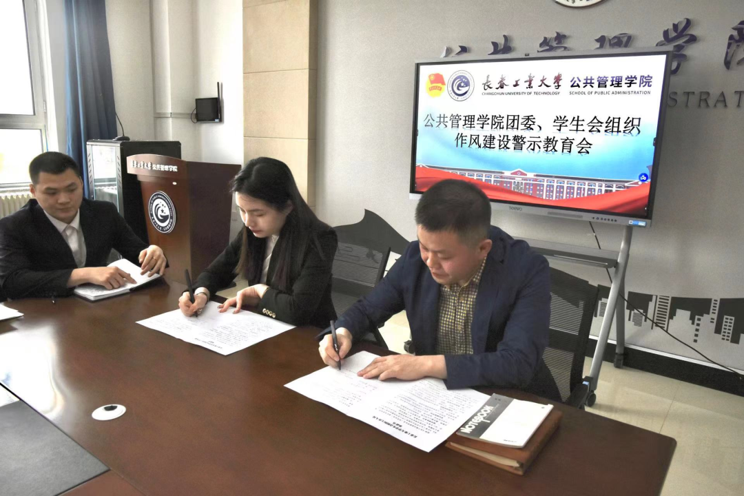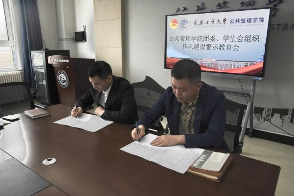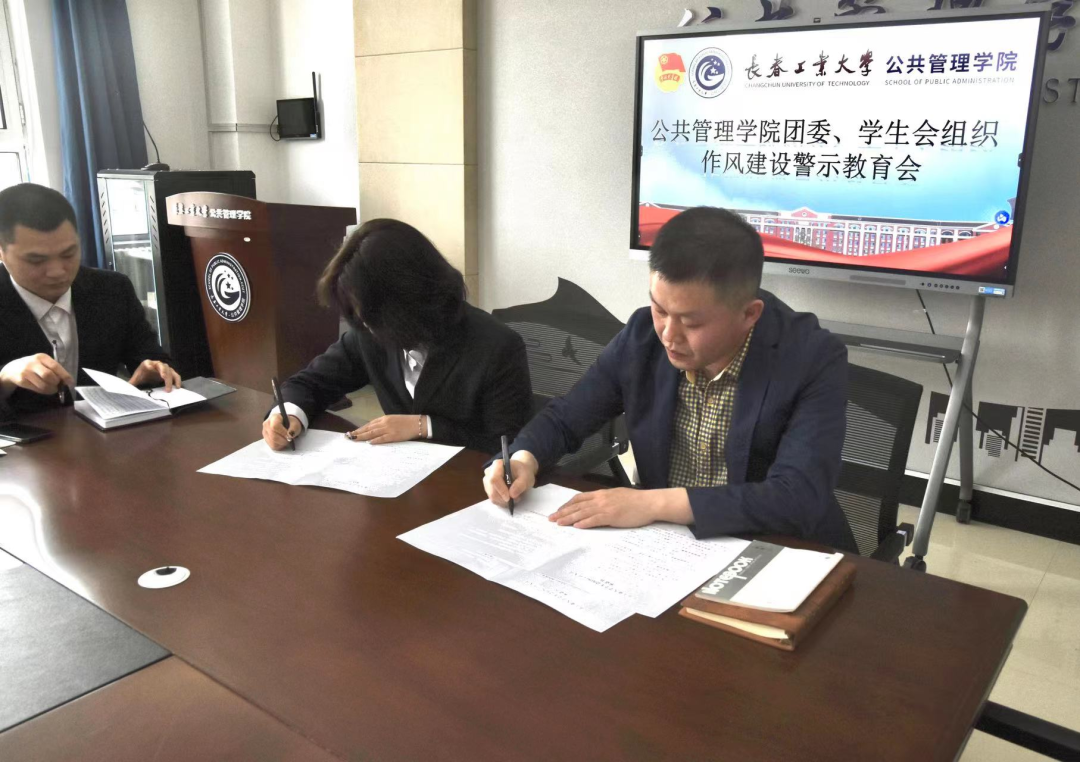 各部门负责人员认真聆听陈磊老师的讲话后,在《米兰milan官方网站学生会组织工作人员承诺书》中签字。