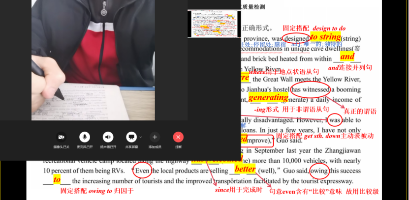 此次活动中,我的伴学帮扶对象是英语学习存在瓶颈的高三学生。依托往日的家教经验和丰富的英语知识,我针对性制定伴学计划、剖析瓶颈所在、深入交流困惑,旨在为伴学对象提供实质性的英语指导。具体伴学过程中,我选取学生近期考试试卷作为例题,以易错题型为抓手,通过详细分析考题内容,为伴学对象细致梳理知识点并举一反三,借此系统搭建起课本知识与高考应试之间的桥梁,以此扫除疑难,排忧解难。