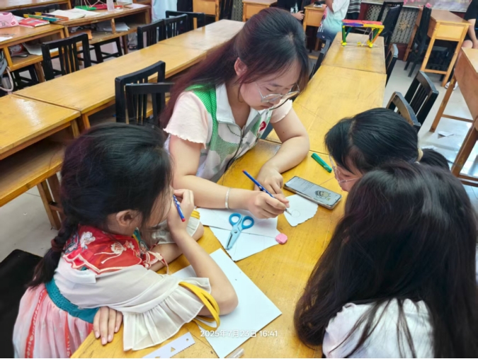 辅导孩子们完成暑假作业时,看着他们眉头紧锁地思考难题,又在点拨后露出恍然大悟的笑容,那种纯粹的求知欲总能感染我。在各种手工活动中,我深切感受到孩子们天马行空的创造力。扎染时,他们小心翼翼地折叠布料,期待着打开时的惊喜,那种对未知的好奇与期待,格外动人。