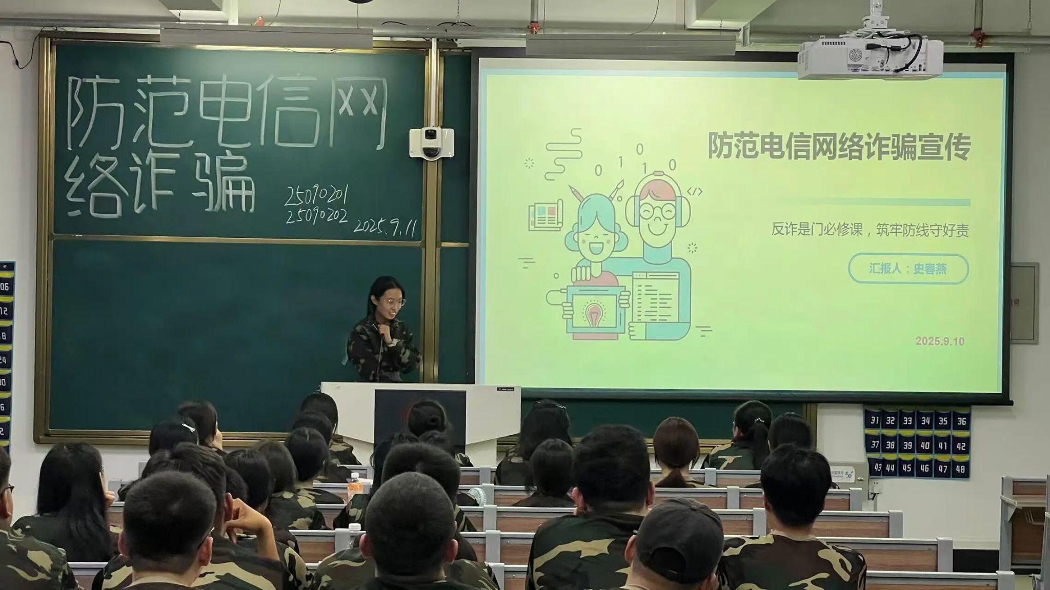 为切实增强学生安全防范意识,有效遏制电信网络诈骗案件发生,9月11日晚,米兰milan官方网站于北湖东校区主楼201等教室组织2025级各班有序开展新生防范电信网络诈骗专题学习活动。