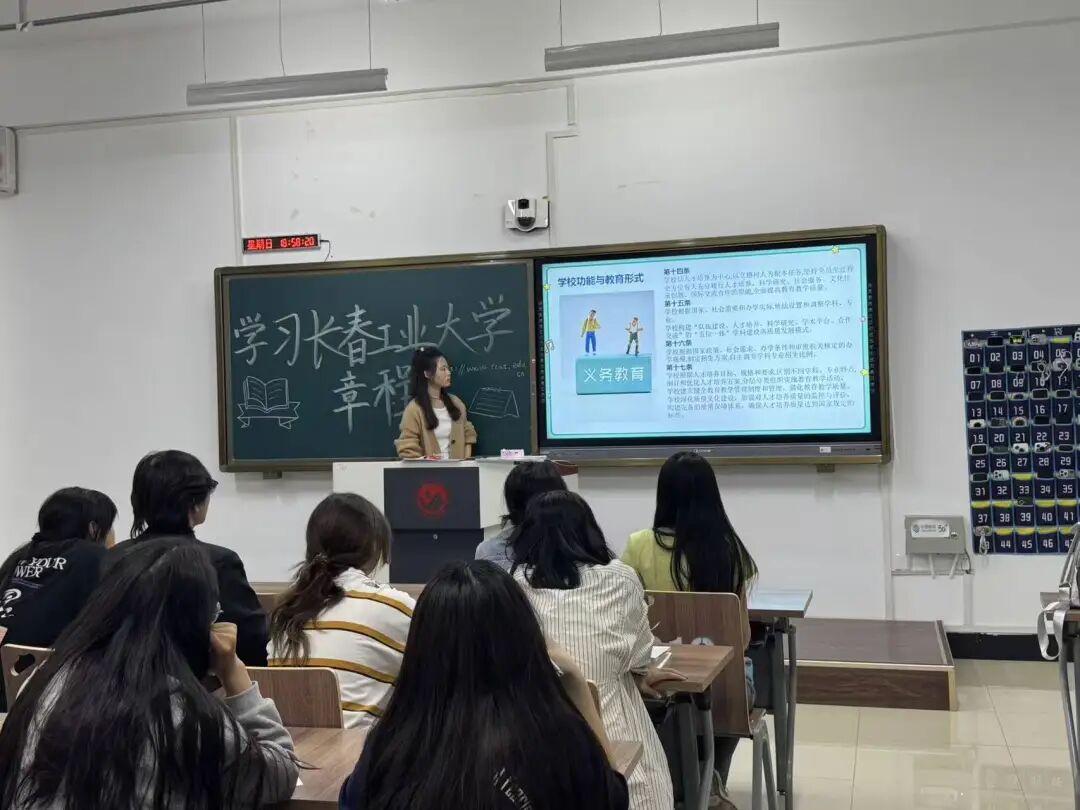 活动伊始,主讲人以清晰的逻辑框架、生动的解读方式,聚焦“学校功能与教育形式”等核心章节展开讲解。她结合多媒体图示,将抽象的章程条文具象化,从学校“以学生为中心、以学术为根本”的办学定位,到“产教融合、科教融汇”的发展路径,细致阐述了学校在人才培养、科学研究、社会服务等领域的目标与追求,让新生对学校的核心制度与发展方向有了直观的把握。
