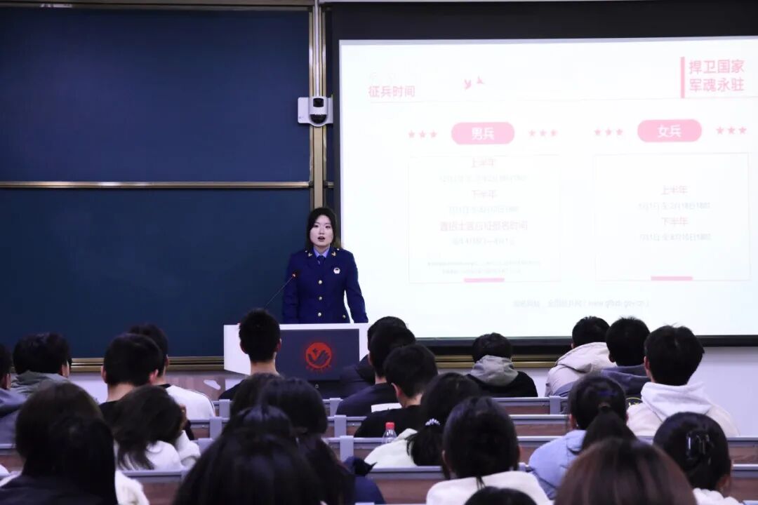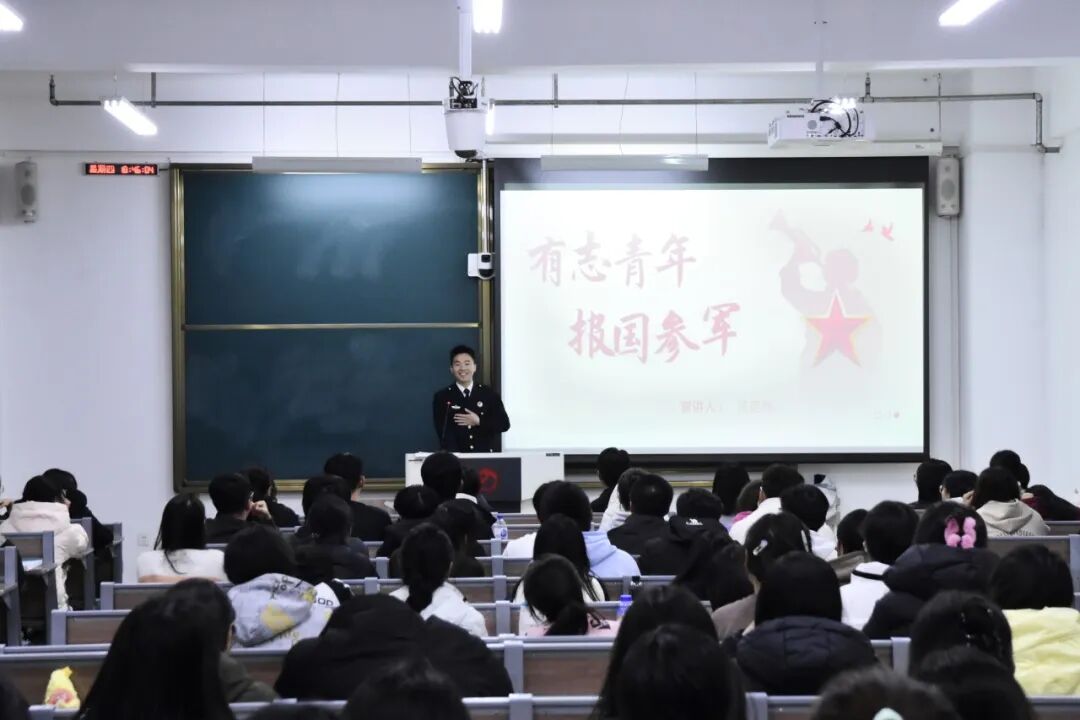 新闻网讯(通讯员 查思敏)为厚植青年学子爱国情怀、筑牢报国理想,鼓励优秀学子投身国防事业,同时展现米兰官网学子昂扬向上的精神风貌,学院于10月23日晚在北湖东区主教学楼开展征兵宣讲及国旗护卫队纳新动员活动,此次活动聚焦内容宣讲、聚力榜样引领,点燃了同学们的激情。