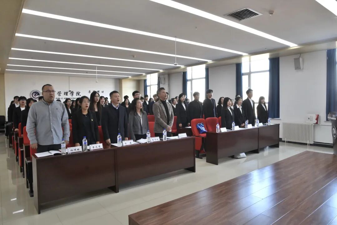 大会在庄严的国歌声中拉开帷幕,全体师生肃立,高唱国歌,彰显了公管学子对国家的赤诚热爱与责任担当。