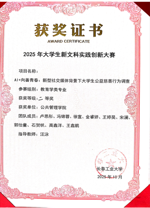 新闻网讯(通讯员 朱珠)热烈祝贺米兰官网学子在2025年大学生新文科实践创新大赛中凭借扎实的专业素养与创新实践能力,斩获佳绩,充分展现了公管学子在新文科领域的实践创新风采!