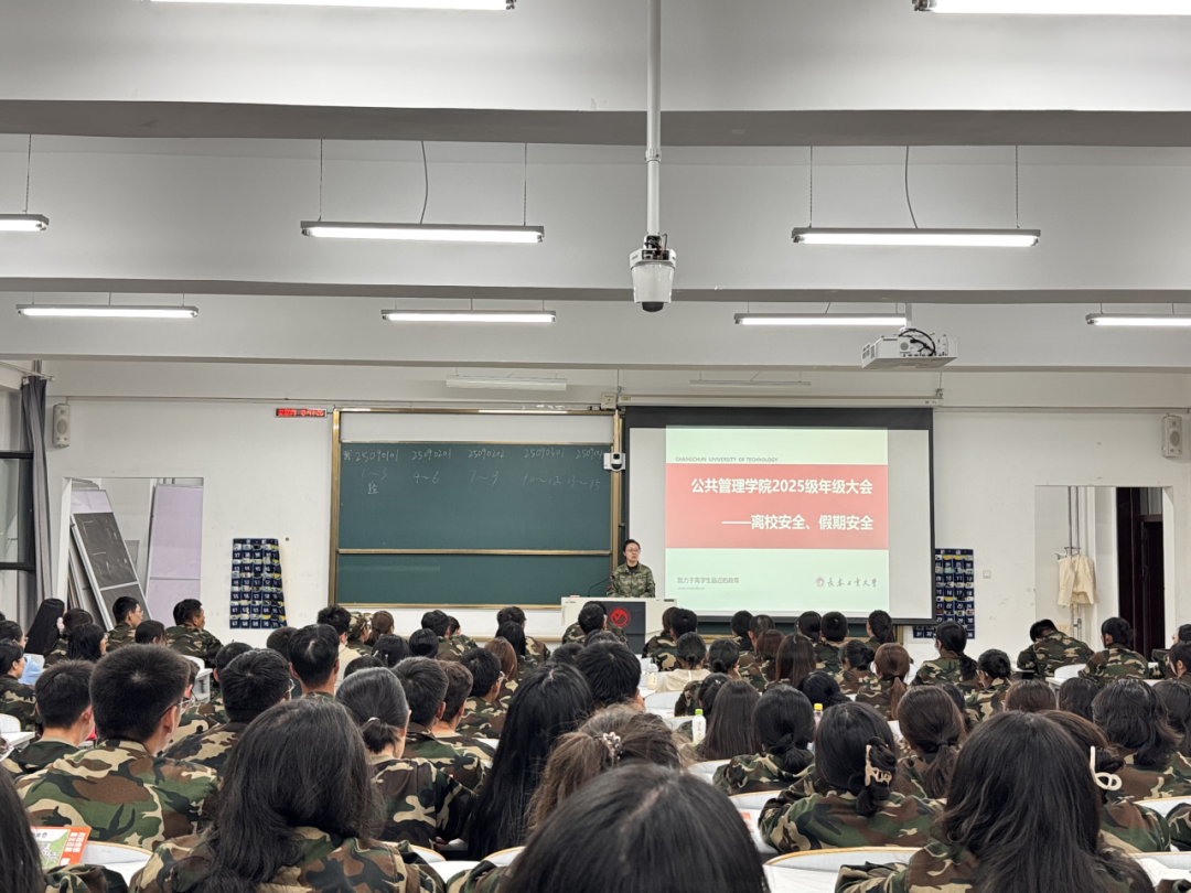 为切实保障学生生命财产安全,筑牢安全防线,9月26日晚,米兰milan官方网站于东区艺术楼221教室召开2025级年级大会,围绕离校安全、假期安全主题开展专项教育。
