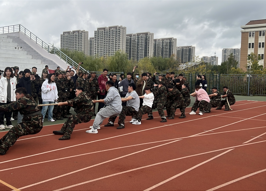 为丰富军训生活、锤炼新生意志。9月24日,军训新生拔河赛在东区操场火热开赛。同学们热情高涨,展开了一场力量与意志的激烈角逐。