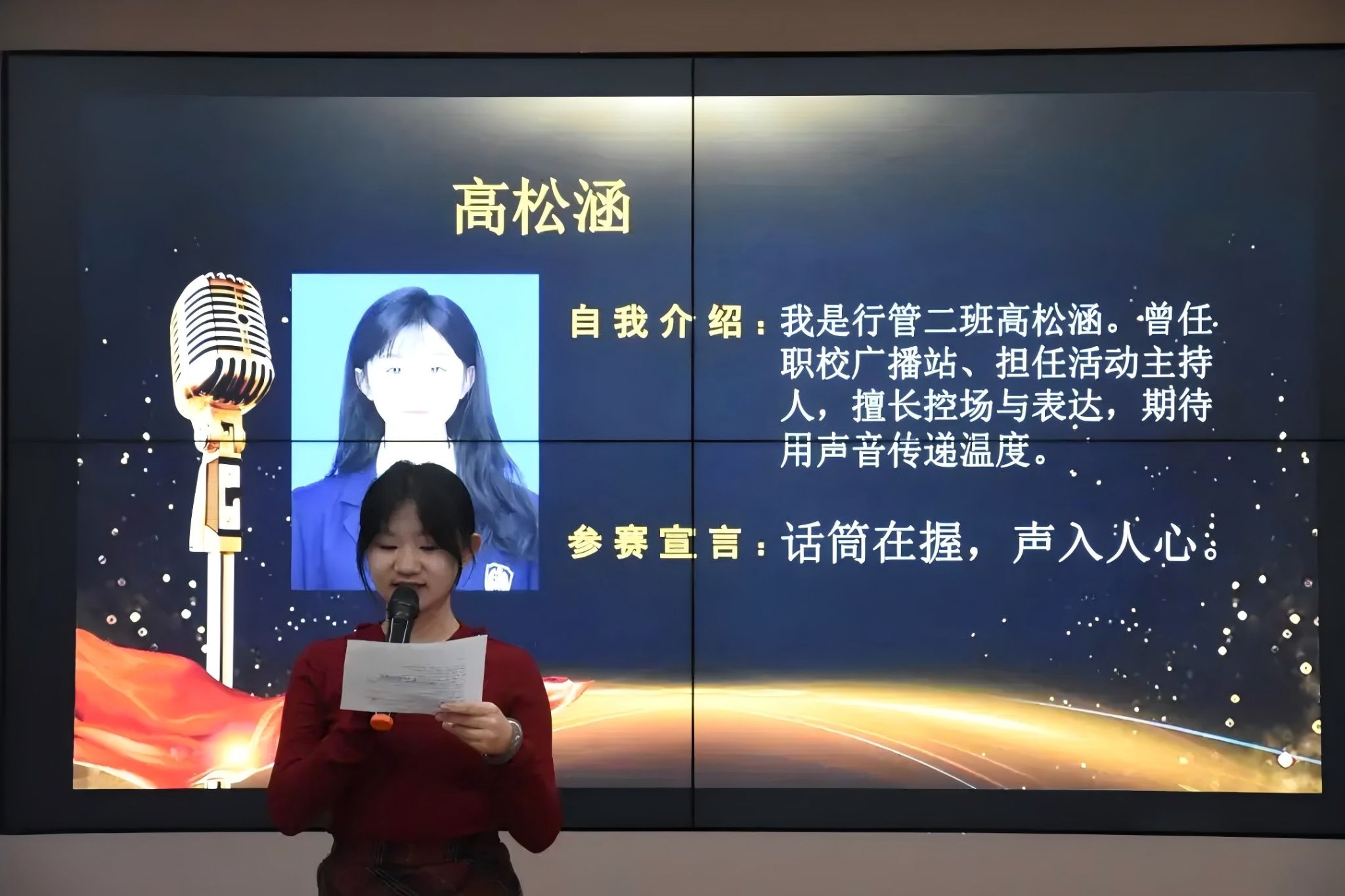 首轮比拼中,选手们紧扣“新声绽放,语你同行”主题,依次带来自备稿件朗诵: