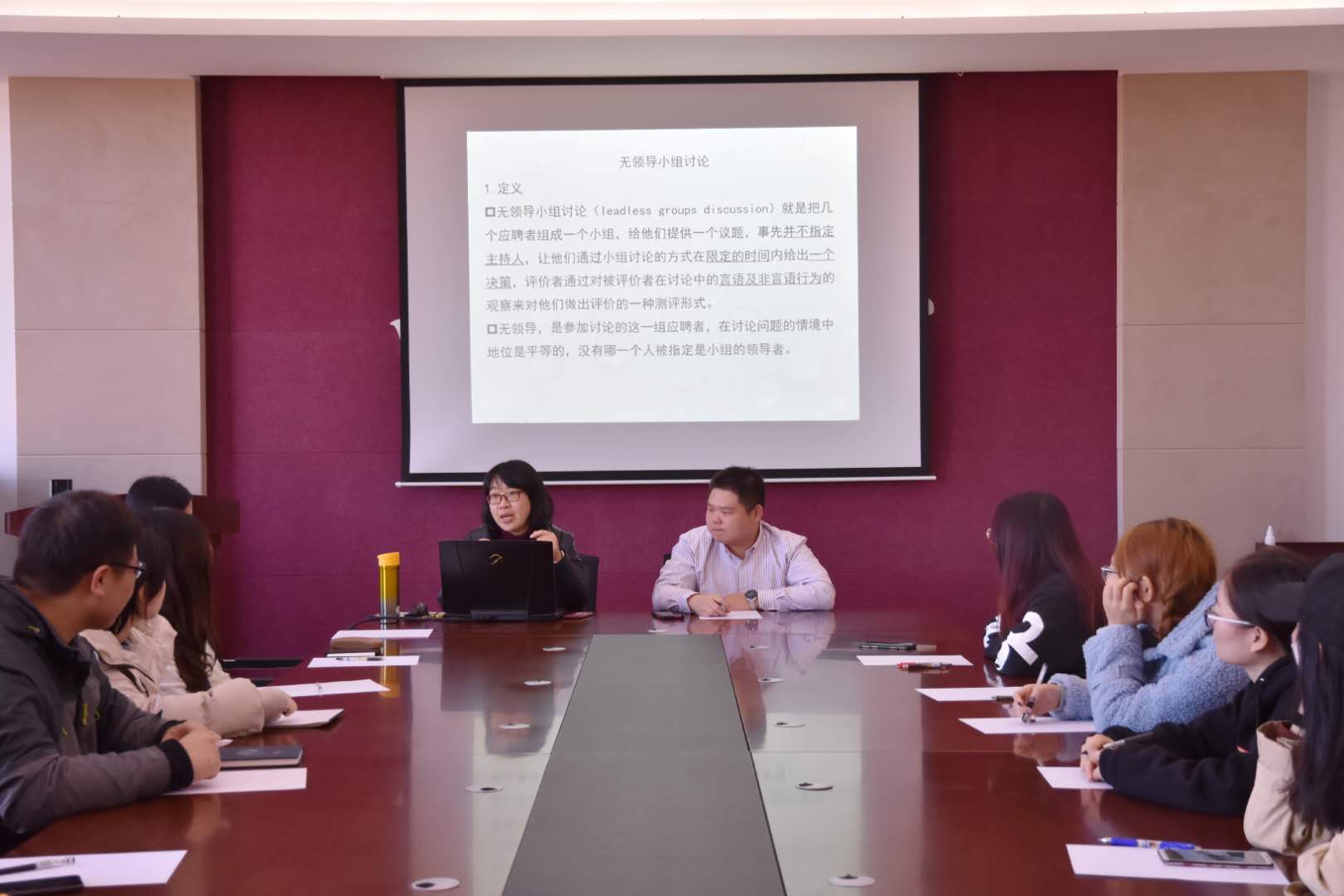 会上老师为同学们讲解了无领导小组讨论的相关知识并给出问题,由同学们自行安排组织,进行讨论和自主发言,最后给出决策。同学们都充分且积极地展示自己,老师在旁对每个同学在讨论中的表现进行观察。讨论结束后,老师就同学们的表现给出评价与指导,指出了同学们在讨论中的优点与不足,使同学们更加清楚的认识到自己在讨论中的角色定位,更好的提出决策。