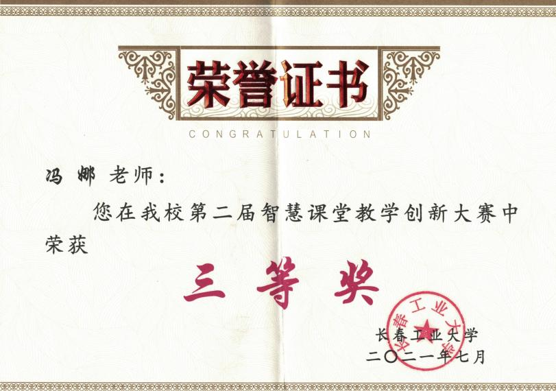 近日,米兰官网教师冯娜同志在米兰milan官方网站第二届智慧课堂教学创新大赛中获得三等奖。