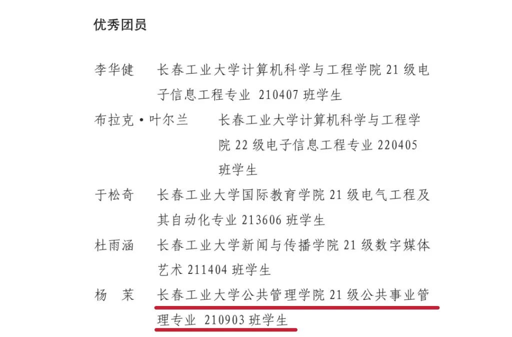 喜报|米兰milan官方网站210903班杨茉同学荣获2023年度“长春市优秀团员”荣誉称号