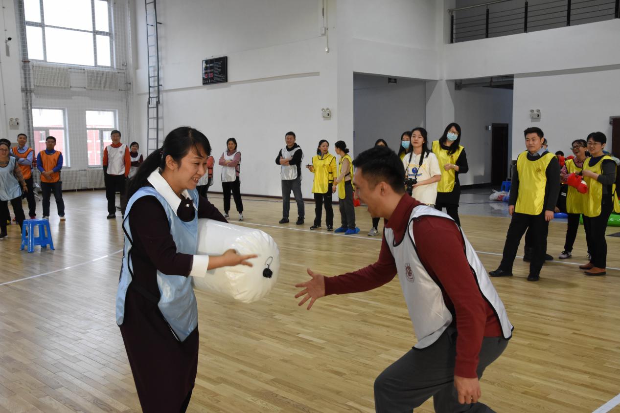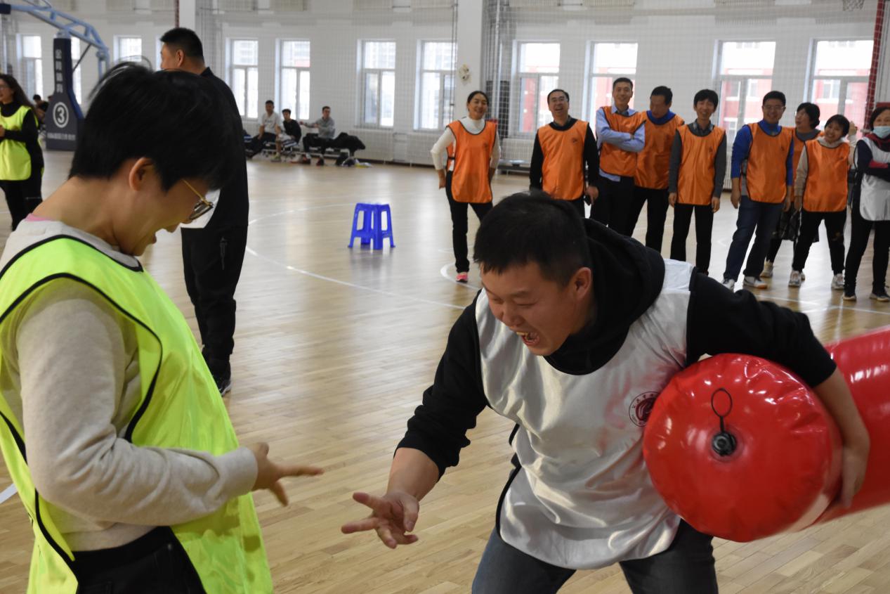 教工们参与活动的热情很高,大家早早地来到了活动场地,每个代表队都认真研读活动规则,纷纷商量着比赛技巧。本次活动共设置了“手脚并用”、“快乐奥特曼拳”、 “幸福俄罗斯方块”三个项目,这些项目形式多样、趣味横生,不仅使教工体味到了快乐,更感受到了团结协作的重要。活动中,不时传来教工们助威的呐喊声、奋力的加油声和开心的欢笑声,整个活动现场都被欢乐和轻松的气氛包围着,充满了浓浓的节日氛围。