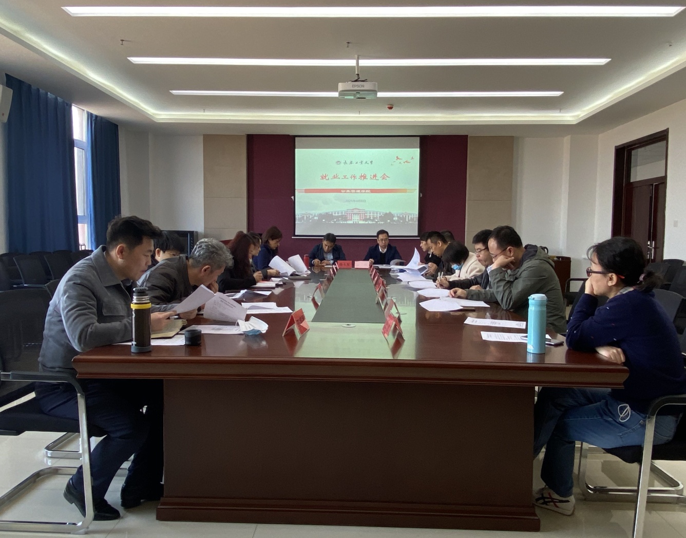 新闻网讯(通讯员 陈磊)4月8日12点50分,米兰milan官方网站在北湖东区主楼401会议室召开2021届毕业生就业工作推进会。学院班子、两办成员及各系主任、系支部书记参加会议。会议由院长曲永军主持。