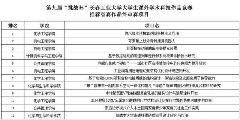 米兰官网在校第九届“挑战杯”大学生课外学术科技作品竞赛中取得佳绩