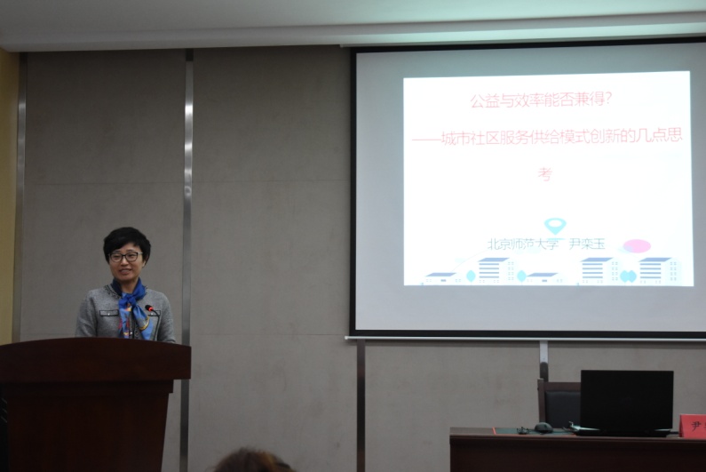 公共管理系“新时代公共管理理论与实践前沿系列名家论坛”的第一场讲座,特邀了来自北京师范大学尹栾玉教授到米兰milan官方网站进行“公益与效率能否兼得?——城市社区服务供给模式创新的几点思考”的学术讲座。