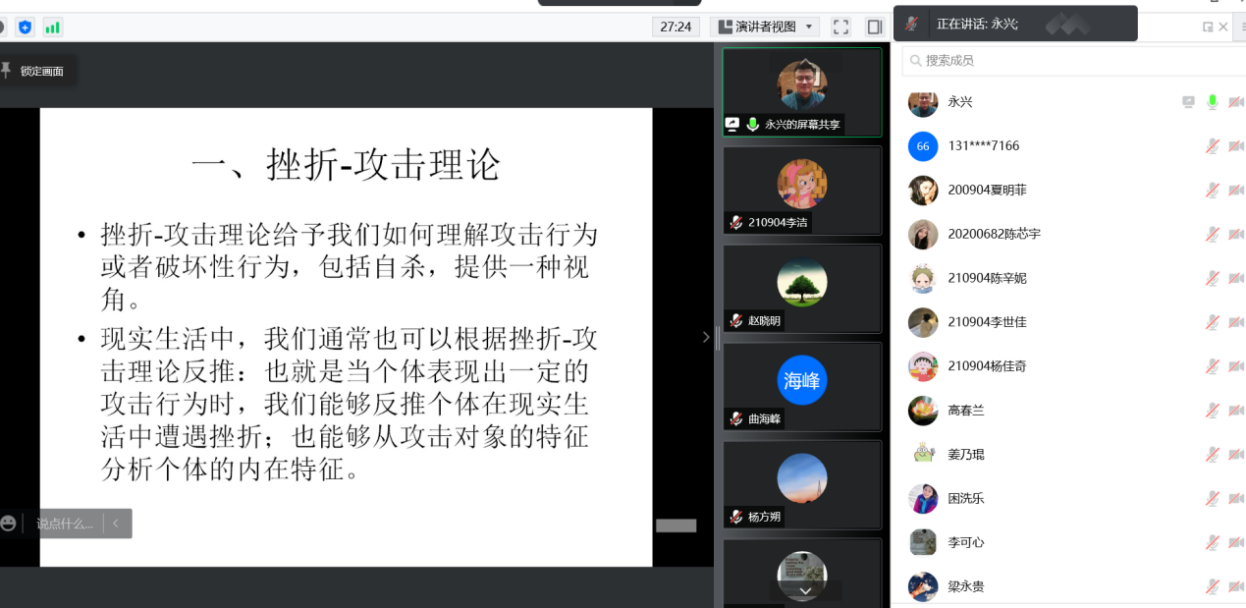 2022年3月19日晚,米兰milan官方网站首轮抗疫心理关爱系列讲座第三讲开讲。本期主讲教师为社会工作系刘永兴老师,讲座主题是《疫情封闭环境大学生破坏性行为的发生与消解——基于挫折理论》。此次讲座的目的在于向全校师生普及心理健康知识,在特殊时期为同学们提供心理辅导以及启迪社会工作系的学生在未来实务工作中对于解决问题有更多的思考。