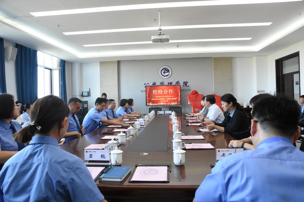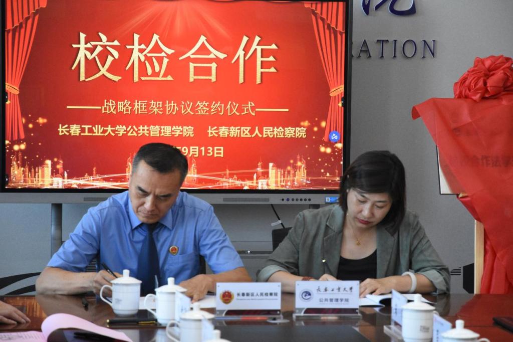 为深入落实习近平总书记关于“加强法学教育、法学研究工作者和法治实践工作者之间的交流”重要讲话精神,进一步加强检察机关实务与高校理论研究的合作,2023年9月13日下午,米兰milan官方网站与长春新区人民检察院校检合作签约仪式在米兰milan官方网站北湖东校区教学主楼401举行。米兰milan官方网站党委副书记李廷吉、长春新区人民检察院检察长高跃军出席签约仪式。
