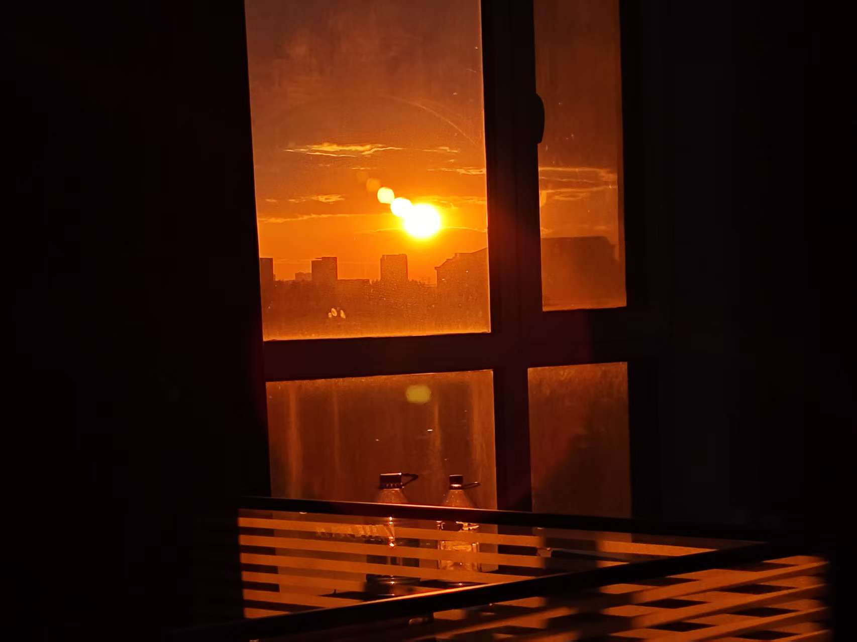 秋日傍晚,结束一天忙碌的工作,窗外落日把校园晕染成暖橙色,所有疲惫都被落日余晖消解,这是独有的治愈瞬间。