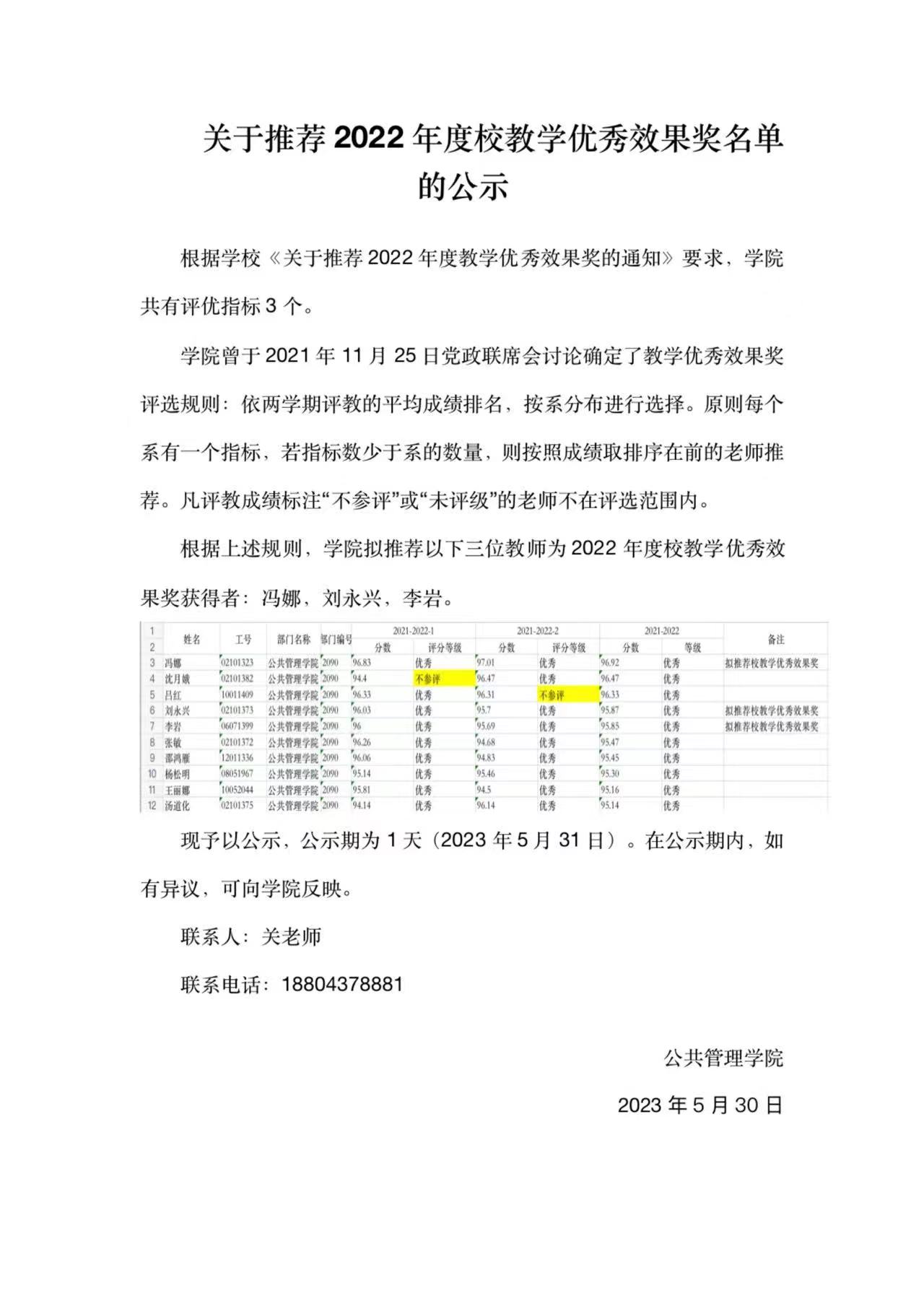 米兰milan官方网站关于推荐2022年度校教学优秀效果奖名单公示