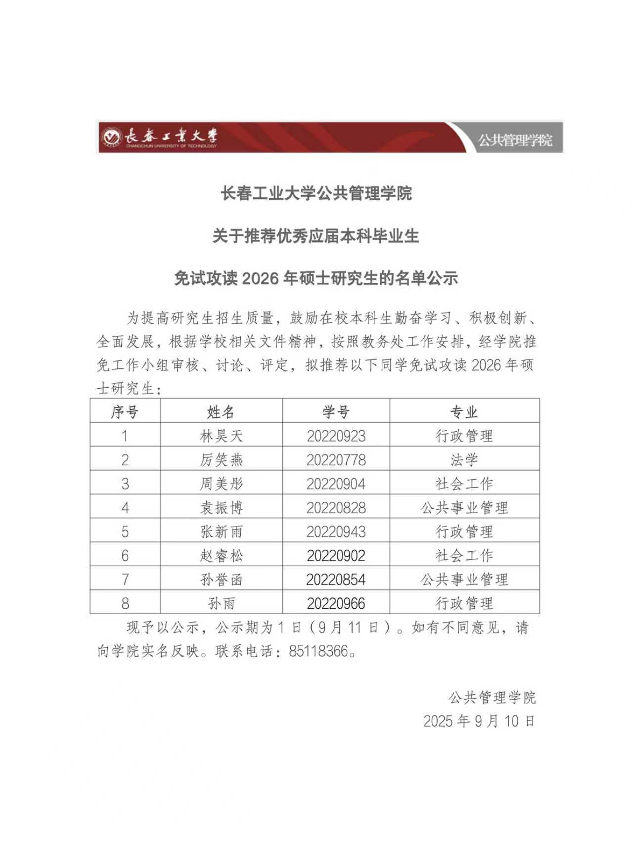 米兰milan官方网站关于推荐应届本科毕业生免试攻读2026年硕士研究生的名单公示